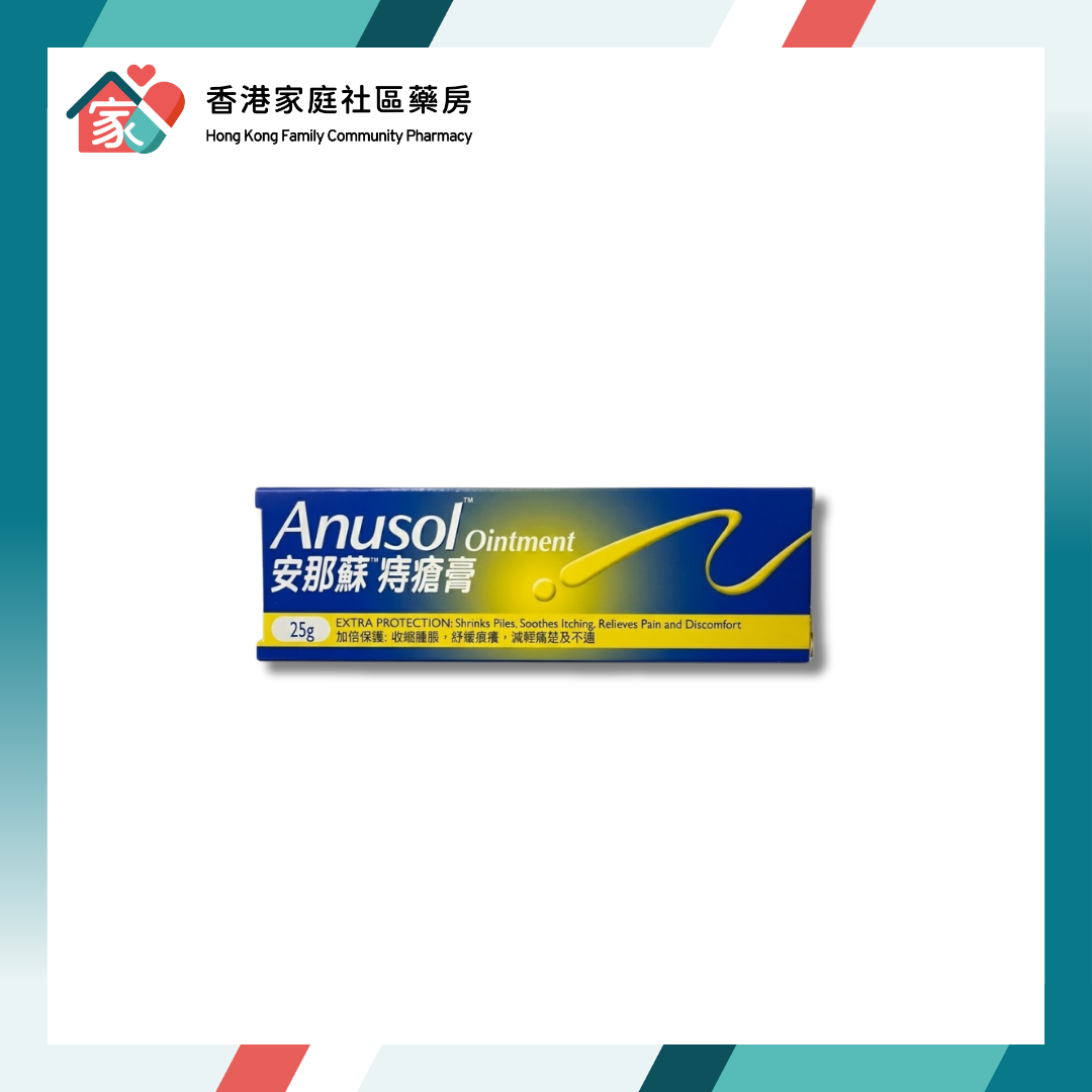 Anusol Ointment 安那蘇 痔瘡膏 25g 現於香港家庭社區藥房有售。