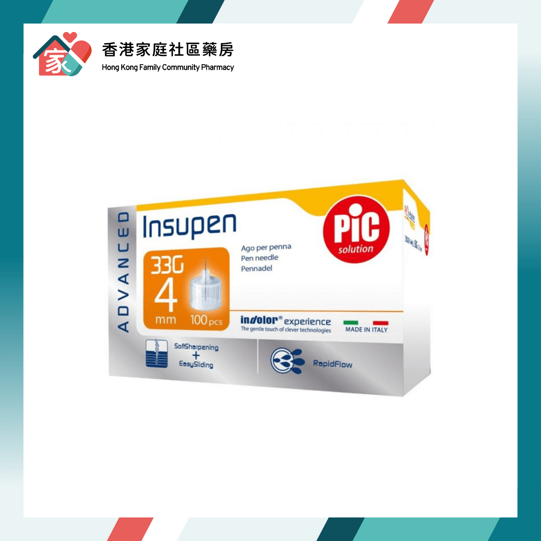 Insupen Advanced 胰島素專用針頭 33G(特幼)4mm 現於香港家庭社區藥房有售。