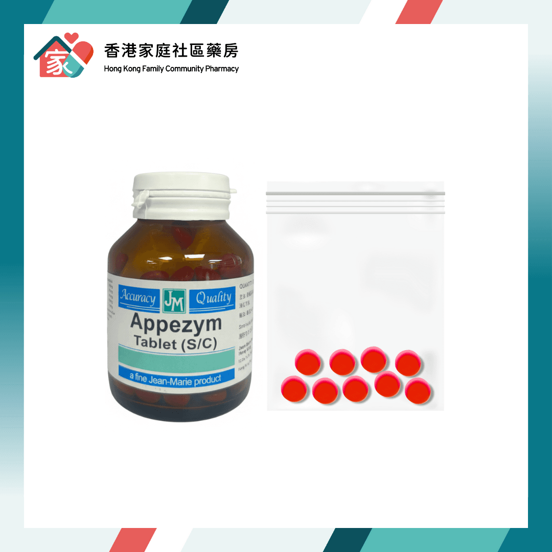 正美消化酵素 Appezym Tab 現於香港家庭社區藥房有售。