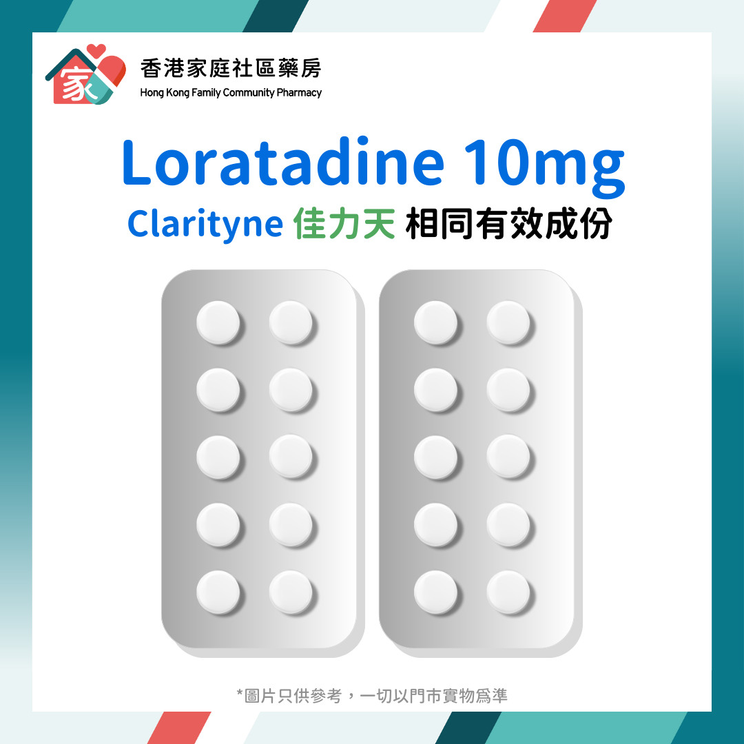 Loratadine 10mg Tablet 抗敏感收鼻水藥|Clarityne 佳力天相同有效成份 現於香港家庭社區藥房有售。