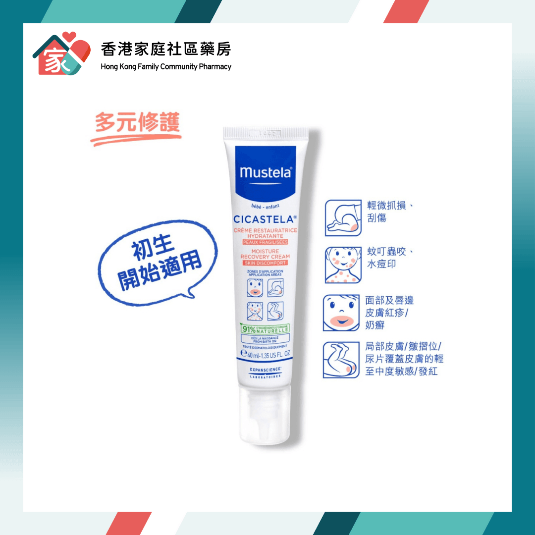 Mustela Cicastela 萬用修護膏 40ml(香港行貨) 現於香港家庭社區藥房有售。