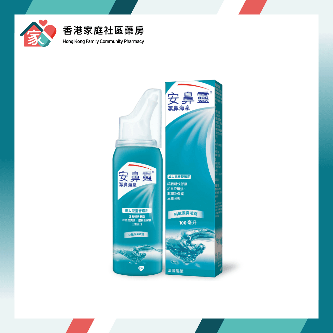 - 潔鼻海泉(本產品):是天然海水配方,不含藥性,主要功能是「清潔」及「保濕」。它可以每天使用,作為日常鼻腔護理(Daily Nasal Hygiene),幫助沖走致敏原,減少發作機會