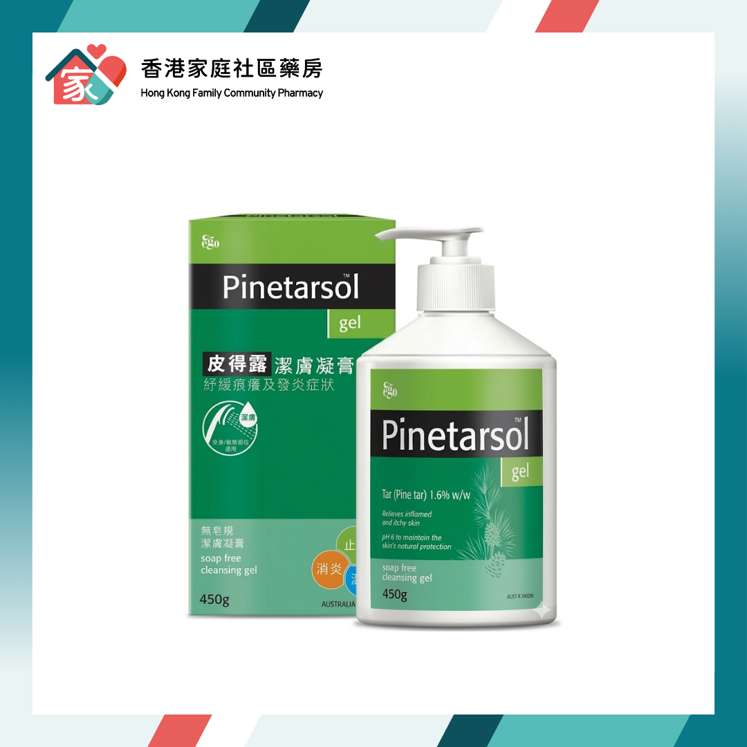 Pinetarsol Cleansing Gel 皮得露 潔膚凝膏 是一款由澳洲著名皮膚護理品牌 Ego Pharmaceuticals 專為痕癢、發炎及敏感肌膚研發的非皂性(Soap-free)日常沐浴替代品。其核心成分為 1.6% 的天然松焦油(Pine Tar),在醫學上被廣泛證實具有卓越的消炎、止痕及輔助抗菌功效,能有效紓緩因一般濕疹、皮炎、皮膚敏感、風癩(蕁麻疹)以及股癬或汗疹引致的局部或全身劇烈痕癢與紅腫不適。Pinetarsol 潔膚凝膏的酸鹼值(pH)與人體肌膚相近,能溫和潔淨皮膚而不破壞天然保護屏障,完美替代一般會刺激發炎肌膚的鹼性沐浴露或肥皂。配方溫和安全,不含類固醇,非常適合嬰幼兒、兒童及成人每天淋浴或洗手使用,讓你在日常潔膚的過程中同步進行鎮靜與修護。本產品設有 100g 輕便支裝及 450g 家庭泵裝,滿足不同場合的護理需求。
