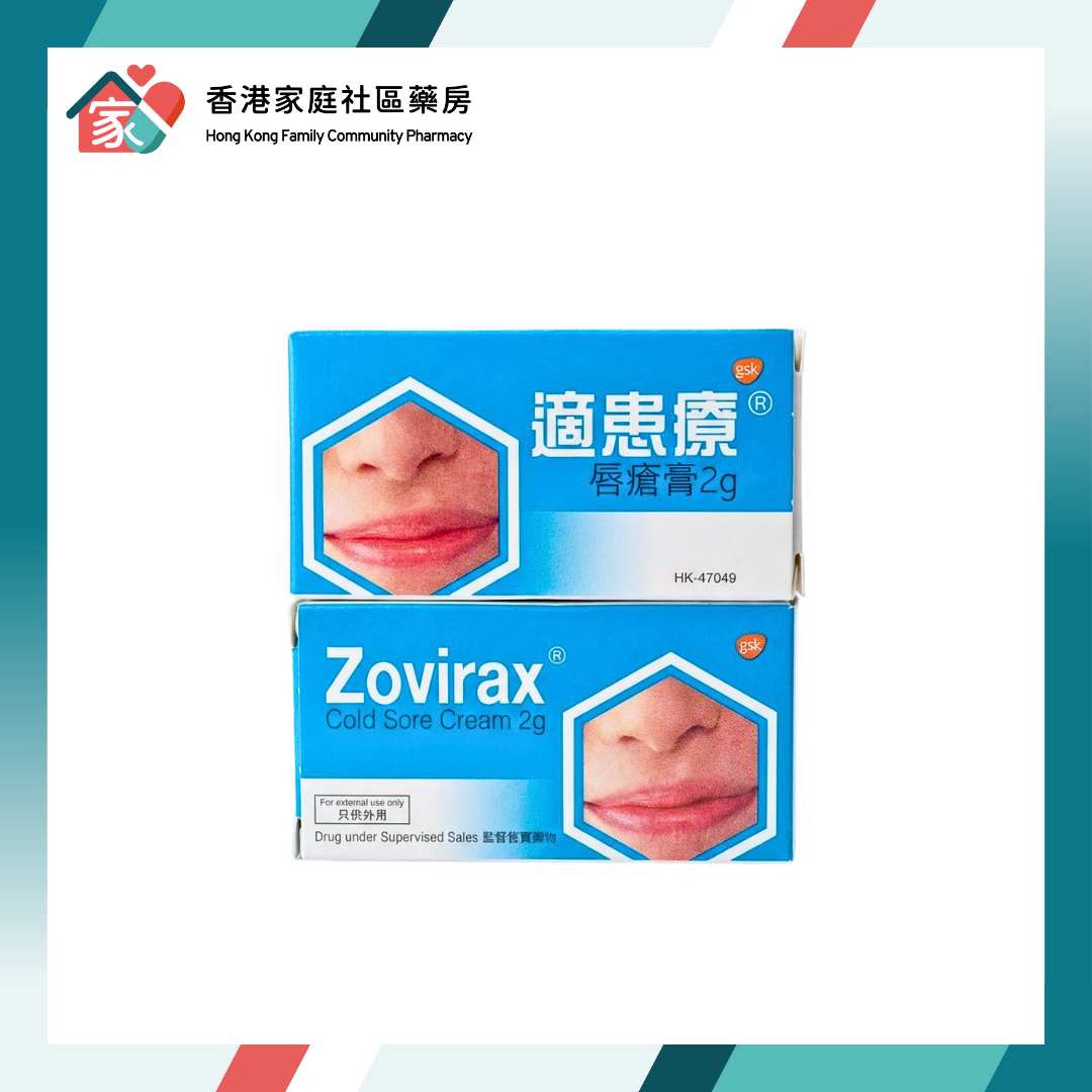 Zovirax 5% Cream(Aciclovir)適患療唇瘡膏是一款專為治療由單純疱疹病毒(Herpes Simplex Virus, HSV)引起的唇瘡而設的外用抗病毒藥膏。其有效成份 Aciclovir 5% 能夠深入滲透皮膚底層,直接抑制病毒在感染細胞內的複製過程。如果在唇瘡發作的初期(如感覺刺痛、痕癢的先兆期)及早塗抹,適患療能有效縮短唇瘡的復原時間,並減輕相關的痛楚及不適。產品配方溫和,成人及兒童均適用。香港私家醫院、醫生及社區藥房(屈臣氏/萬寧)藥劑師廣泛使用。